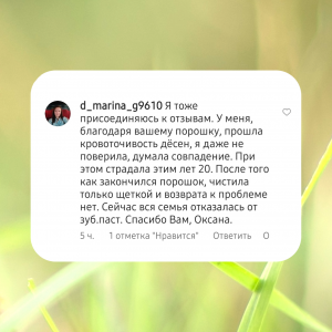 И есть средство, о котором пишут в отзывах, как о победителе пародонтоза — Зубной порошок с гвоздикой! Даже переставая им пользоваться, покупатели больше не возвращаются к прежним проблемам.