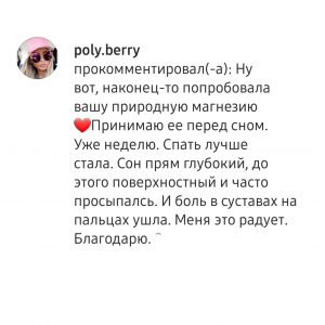 — Природная Магнезия не раздражает слизистую оболочку желудка, поэтому ее можно принимать натощак. Натощак всасывается лучше, поэтому мы рекомендуем не кушать после приема полчаса.
