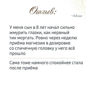 — Чтобы восполнить дефицит — принимаем Магнезию утром. Для воздействия на нервную систему — во вторую половину дня (днем после 16.00 или вечером)