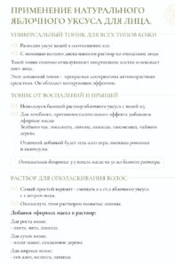 В таком разведенном виде яблочный уксус является прекрасной альтернативой антивозрастным, тонизирующим и матирующим тоникам.