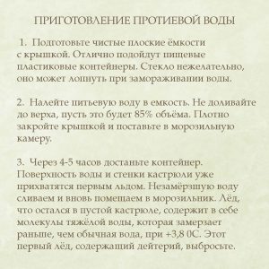 Для питья также очень желательно использовать такую воду. Это лучшая альтернатива покупной «мёртвой» воде.